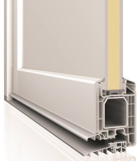 Oferta drzwiowa firmy została stworzona poprzez podział skrzydła z użyciem paneli z PVC 38 mmi i 48 mm z przekładką stalową oraz szyb zespolonych przy zachowaniu symetrycznych proporcji wpadającego do pomieszczenia światła.